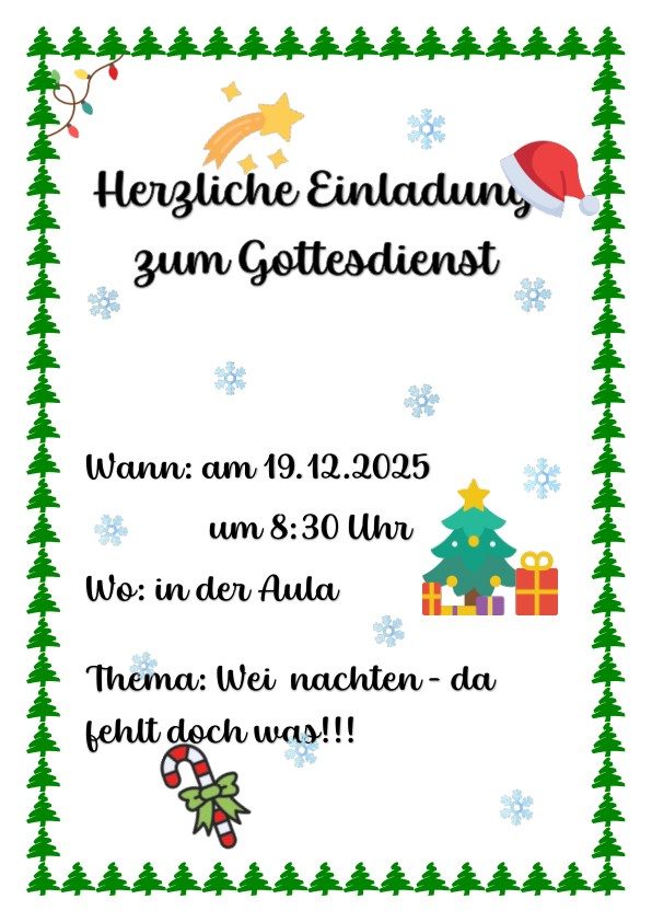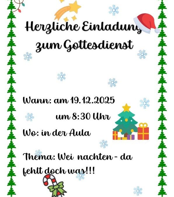 Auch dieses Jahr möchten wir gemeinsam mit euch unseren Weihnachtsgottesdienst feiern und laden euch daher ganz herzlich ein mit dabei zu sein – freut euch auf Musik, ein Theaterstück und besinnliche Momente.
