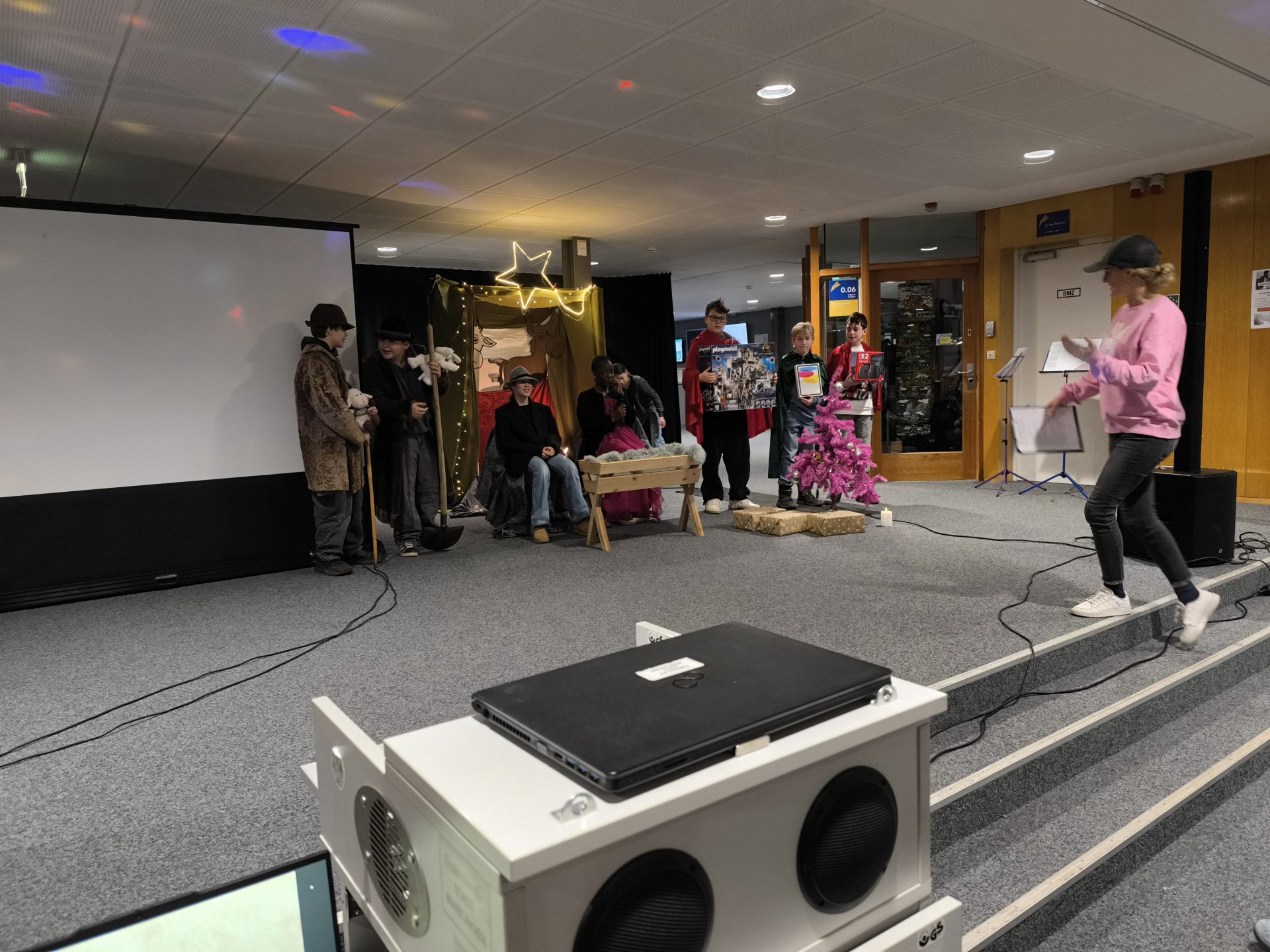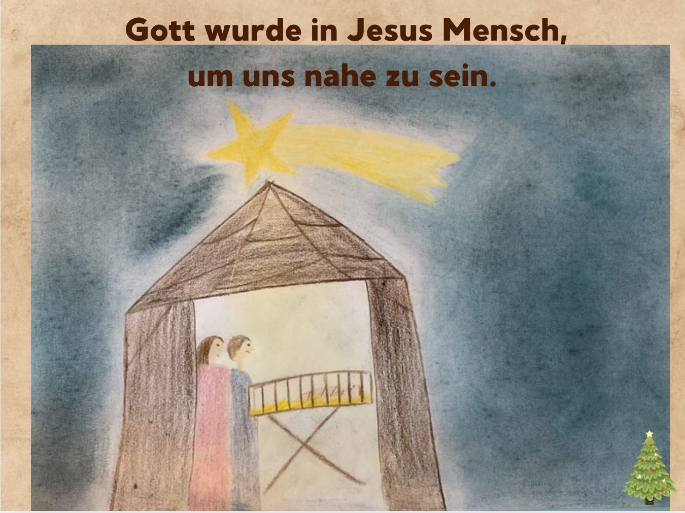 Einige Schülerinnen aus Klasse 9 und 10 machten in eindrucksvollen Poetry-Texten und Bildern deutlich, was fehlt, wenn Jesus aus Weihnachten verschwindet: Zum Beispiel Liebe, Hoffnung, Nähe, Licht, Sinn und die Verbindung zu Gott. Ihre Texte und Bilder zeigten, wie leer Weihnachten ohne Jesus und all das, was er uns schenken möchte, wäre – und dass Jesus genau das ist, was Weihnachten seinen eigentlichen Sinn gibt. Wo Jesus fehlt, ist eine Lücke. Wo Jesus ist, füllt er diese Lücke.