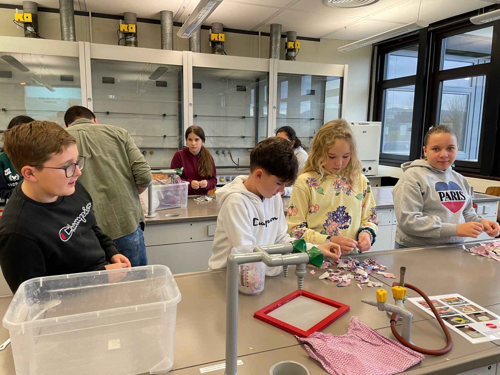 Im Ethikunterricht beschäftigen sich die Schülerinnen und Schüler mit Mülltrennung, Wertstoffkreisläufen und Ressourcenschonung. Sie reflektieren ihr eigenes Konsumverhalten und entwickeln Ideen für nachhaltiges Handeln im Alltag.